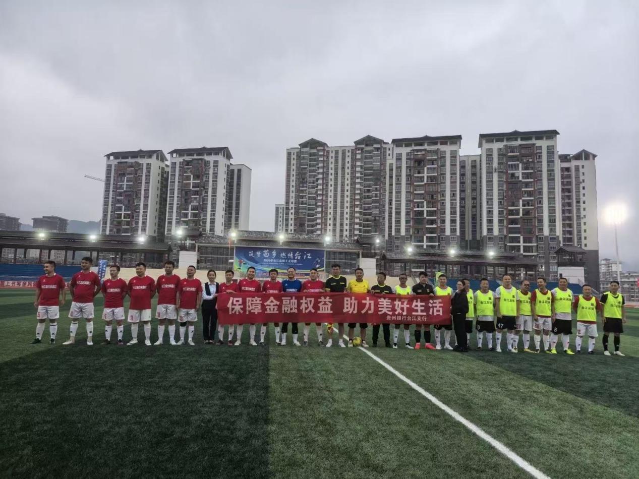 近日,2025年“筑梦苗乡·燃情台江”职工足球赛火热开赛,贵州银行台江支行积极组织宣传小分队赴赛事现场开展金融教育宣传活动,为运动员、裁判员、教练员及现场观众送上实用的金融安全知识。