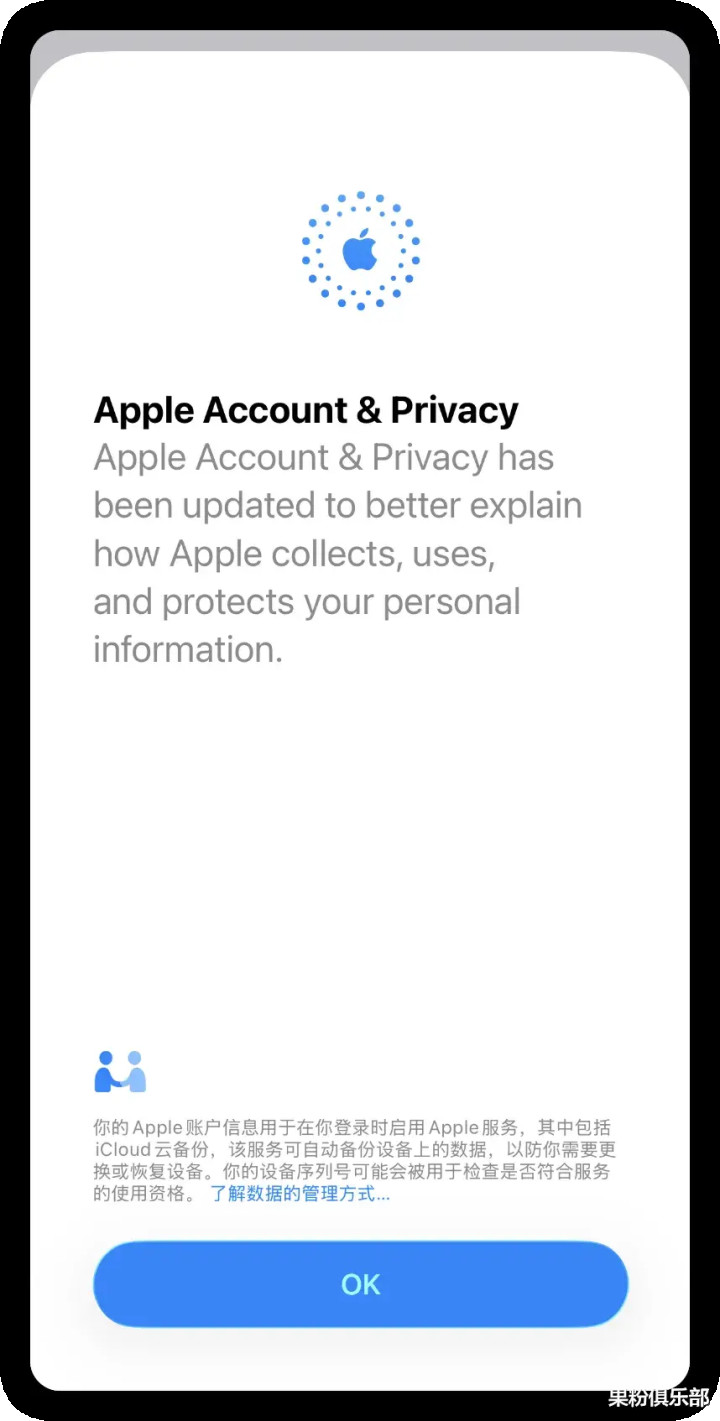将 iPhone 升级至 iOS 26.2 Beta 后,首次打开 Apple 账户选项时,会弹出一个提示框。