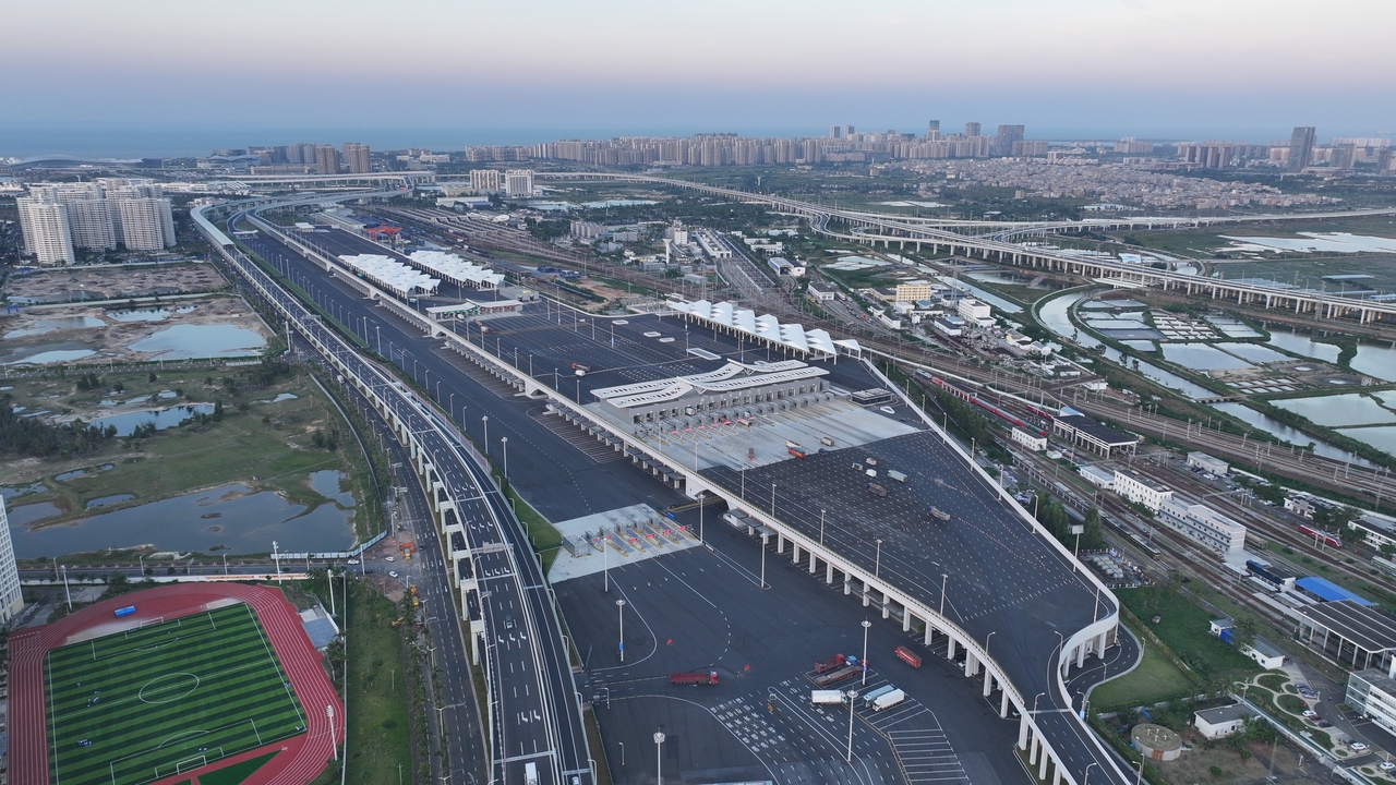作为海南自由贸易港口岸建设“十四五”规划重点项目,海口“二线口岸”项目总建筑面积23.37万平方米,相当于33个标准足球场,南北绵延2.4公里,东西横跨1.5公里,是新海港和铁路南港出岛货车的统一查验通道。项目建成后,可满足年离岛货车172万辆次、货物吞吐量4400万吨的通关需求,将极大提升口岸通关效率与服务能级,为港城深度融合发展注入强劲动能。