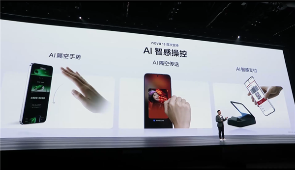 不只是处理器,华为nova 15还首次支持了AI智感操控,带来AI隔空手势、AI隔空传送、AI智感支付等功能。