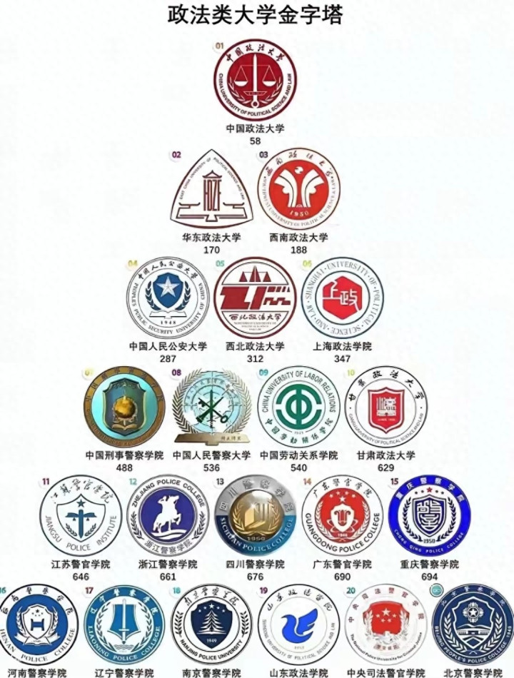 不过,层级排序只是外界的一种观察视角。细看整个金字塔,会发现除了传统强校,一批地方性的政法、警察院校也占有重要位置。比如上海政法学院、甘肃政法大学、山东政法学院等,结合地方实际,培养了大量服务基层法治与公共安全的专业人才。各地的警官学院更是公安系统人才培养的主力军,为维护地方治安输送了源源不断的新生力量。