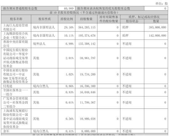 截至2025年9月30日,巨人网络股权结构